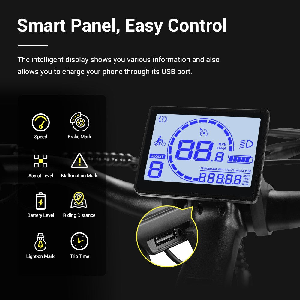 Eleglide T1 Step-Thru verfügt über ein intelligentes LCD-Display, das Ihnen verschiedene Informationen wie Geschwindigkeit, Distanz und Akkuleistung anzeigt. Es ermöglicht Ihnen, mehrere Funktionen durch einfache Bedienung auf dem Display zu aktivieren und so Ihre Fahrt intelligenter und einfacher zu gestalten.