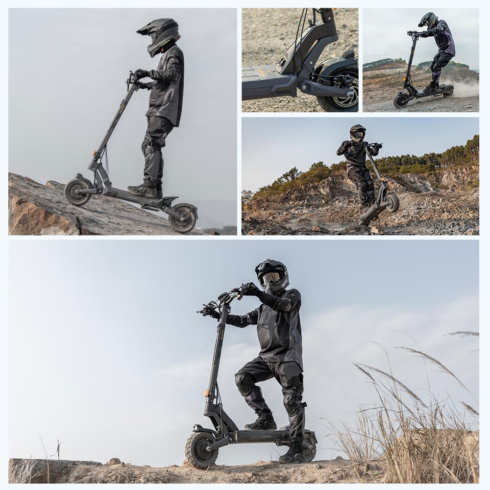 Bezwingen Sie unwegsames Gelände souverän – der Ausom L2 Max verfügt über eine robuste Doppelschwingenaufhängung , inspiriert von Flugzeugfahrwerken, und bietet selbst auf den härtesten Straßen SUV-ähnliche Laufruhe. Gebaut aus geschmiedeter Aluminiumlegierung , trägt dieses Offroad-Monster bis zu 130 kg und verfügt über schlauchlose 10" x 3" Stollenreifen für hervorragenden Grip, Pannensicherheit und Stabilität in jedem Gelände.