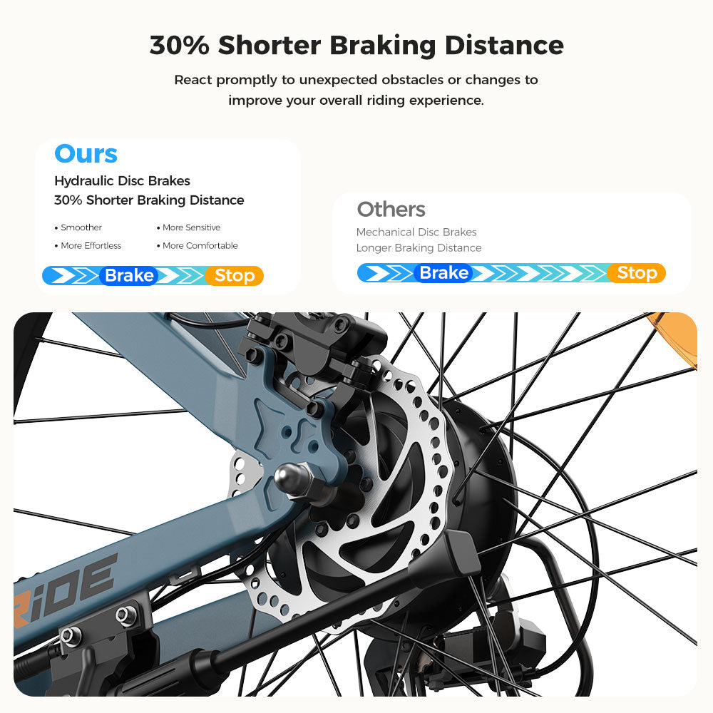 Ausgestattet mit hydraulischen Scheibenbremsen bietet der Xtremer 3 eine kraftvolle und stabile Bremsleistung für sanfte und effiziente Stopps. Der Bremsweg ist 30 % kürzer als bei mechanischen Scheibenbremsen, was Offroad-Fahrten sicherer und zuverlässiger macht.