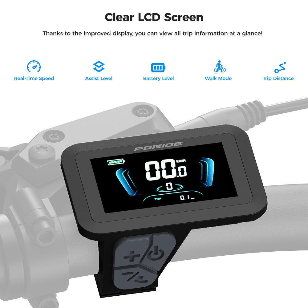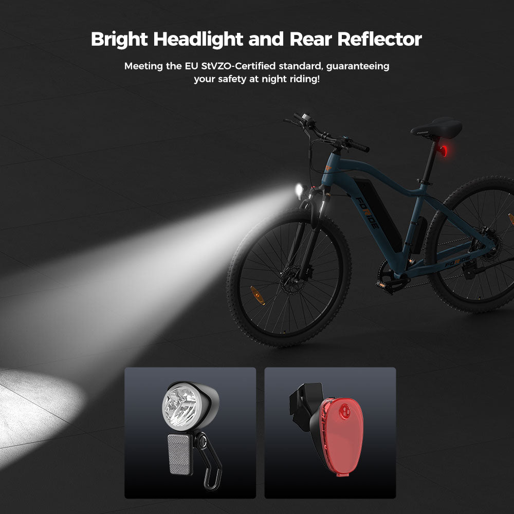 Ausgestattet mit EU-StVZO-zertifizierten Frontscheinwerfern und Rückstrahlern sorgt dieses E-Bike für hervorragende Sichtbarkeit und Sicherheit bei schlechten Lichtverhältnissen. Der LCD-Bildschirm liefert klare und leicht lesbare Informationen, sodass Sie jederzeit über Ihre Fahrt informiert sind.