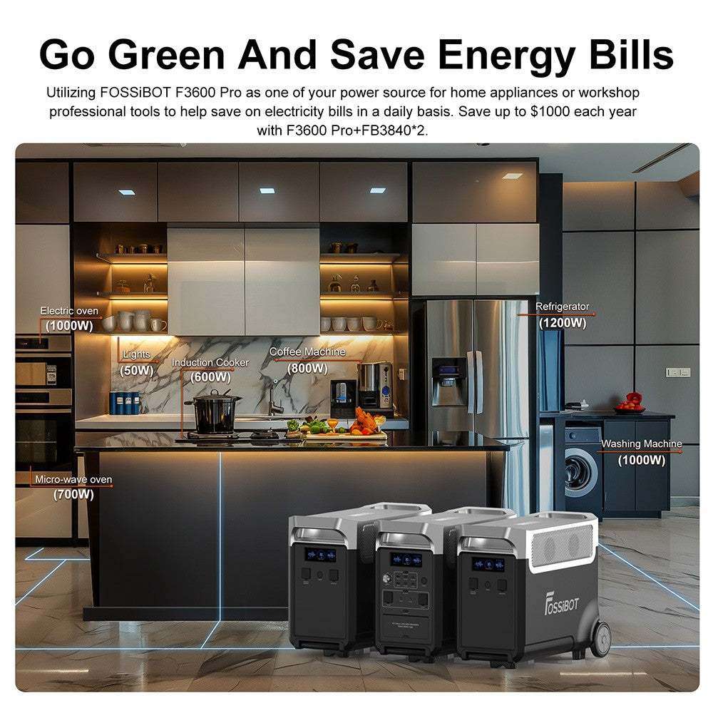 El FOSSiBOT F3600 Pro cuenta con una batería central de alta capacidad de 3840 Wh con la opción de expandirse hasta 11520 Wh conectando dos paquetes de baterías adicionales, lo que brinda una impresionante salida de alta potencia de 3600 W.