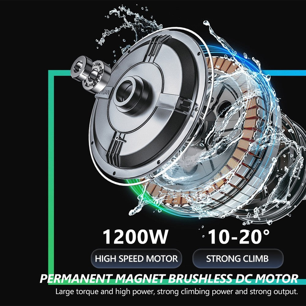 | Specification | Motor Type: permanent magnet brushless DC motor Max Riding Noise: ≤ 55db Rated power: 1200W Operating Temperature: -20 - 45 Celsius Rated Voltage: 48V Rated Efficiency: ≥ 80% Construction: Gear drive Torque: 60N.m Max Load: 120 kg Max Speed: 50-60 km/h Distance Per Once Charge: 35-45 km Climbing: ≤20 ° Overcurrent Protection Value: 20± 1A Undervoltage Protection Value: 41.5±0.5V Battery Type: Lithium polymer Battery Voltage: 48V Battery Capacity: 17.5Ah Charger Input Voltage: AC110-220V50HZ Charging Time: 4-6h |