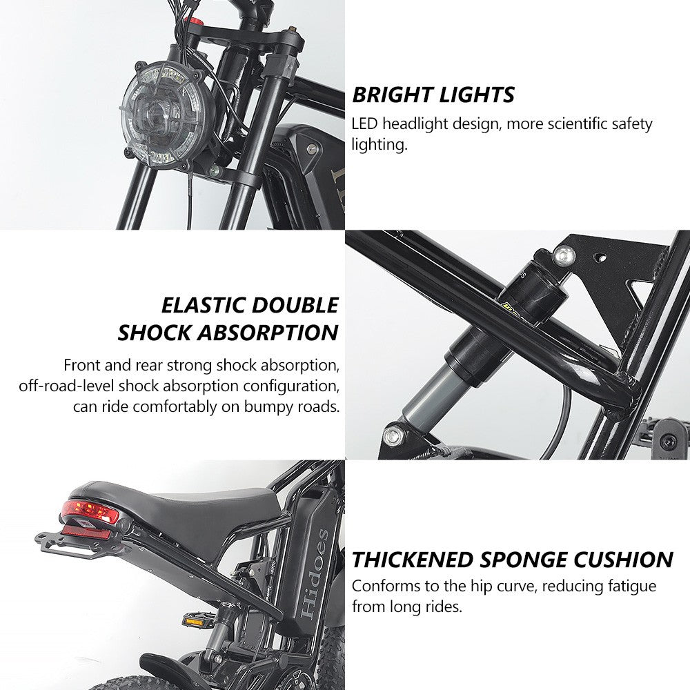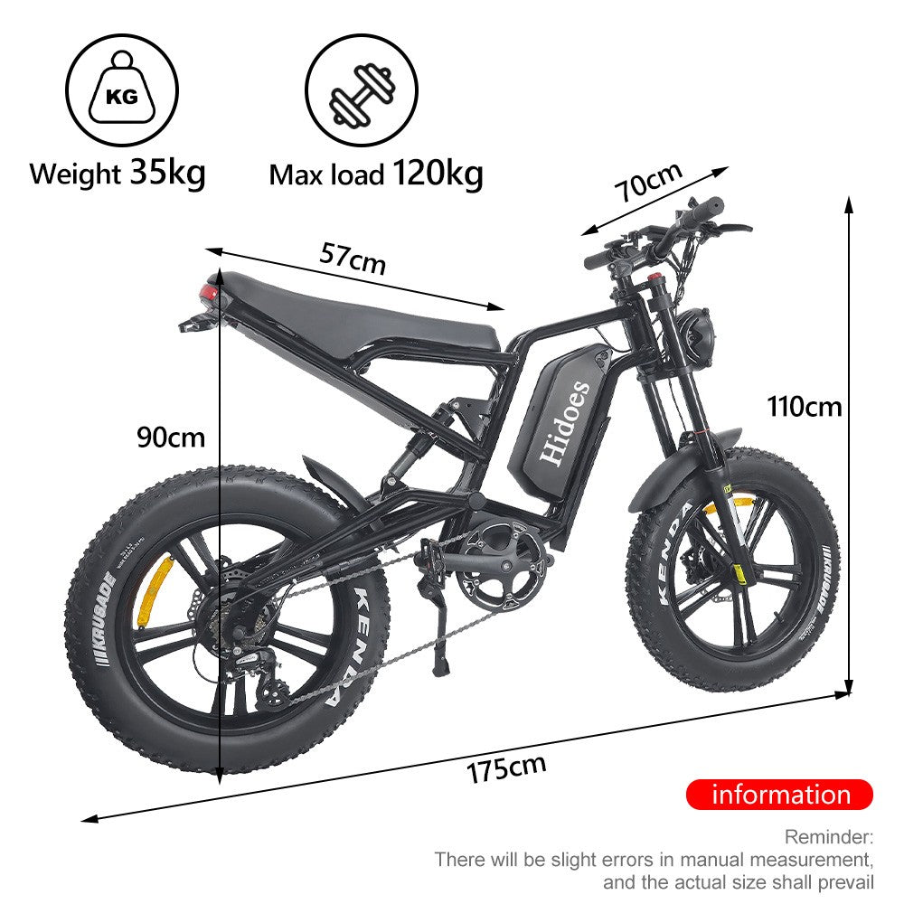 Hidoes B6 Electric Dirt Bike 20" Fat Tires 1200W Motor 48V 17.5Ah Battery