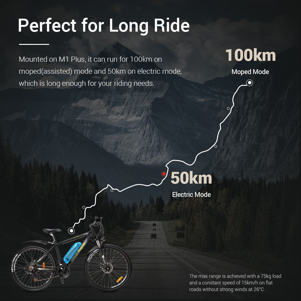【Perfect for Long Ride】The e-bike battery pack can be used both for Eleglide M1 and M1 Plus. Mounted on M1 Plus, the battery can run for 62.14 miles(100km) on moped(assisted) mode and 31.12 miles(50km) on electric mode, which is perfect for your long-distance rides.