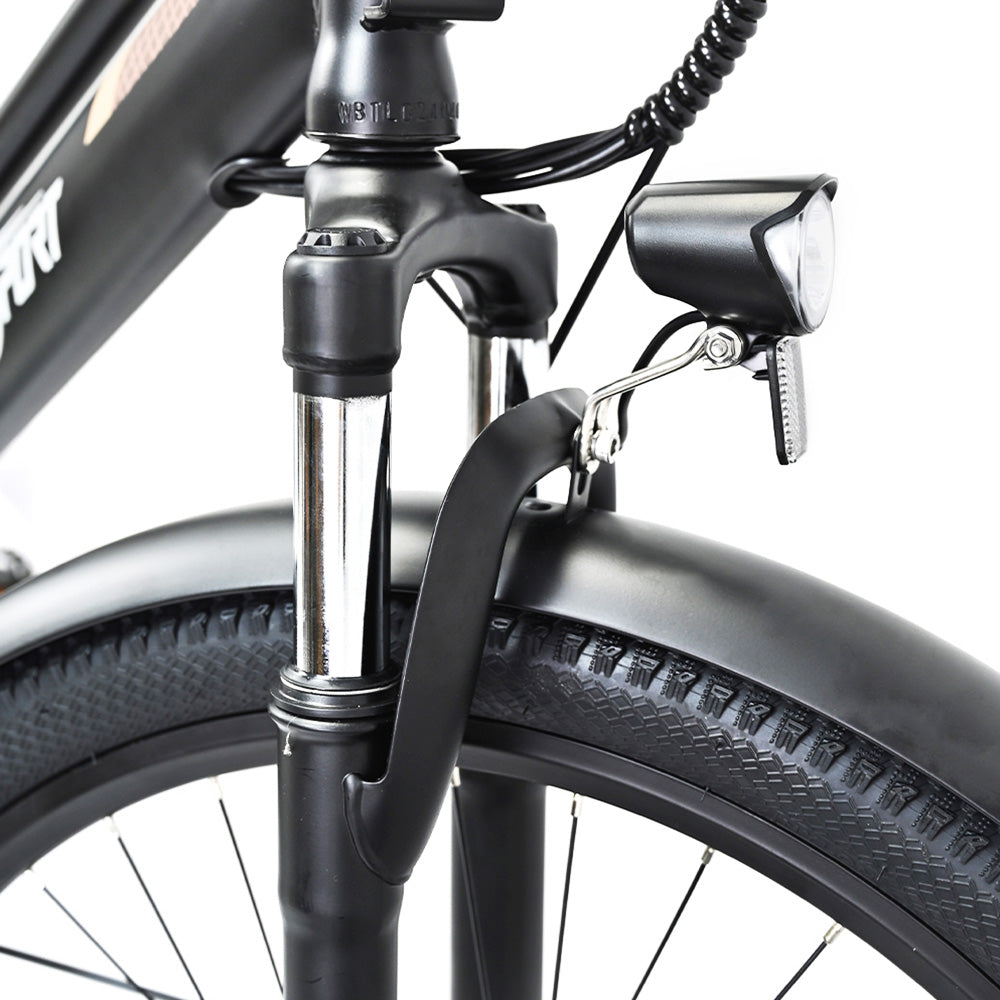 | Specification | Motor Rated Power: 250W Tire: 26x2.35 inch Pneumatic tires Hub Form: Wire spoke wheel Maximum Speed: 25Km/h Mileage: 40km in electric mode Maximum Climbing Angle: 25 degree Waterproof Level: IP54 Battery Type: 18650 lithium-ion power battery Battery Capacity: 14.4AH Battery Rated Voltage: 36V Motor Form: Assist mode Motor Type: 26 inch/high-speed gear/ Integrated wheel brushless motor Charger Output: 42V 2.0A Charger Input: 100~240V 50/60Hz 3.0A Undervoltage Protection Value: 29V±1V Overcurrent Protection Value: 15A±1A Charging Time: 7-8 hours Instrument Display: Multifunctional LCD screen Front Lighting: YES Braking Method: Front disc brake + Rear disc brake Front Fork: Fork damping Gear: Shimano 7-Speed |