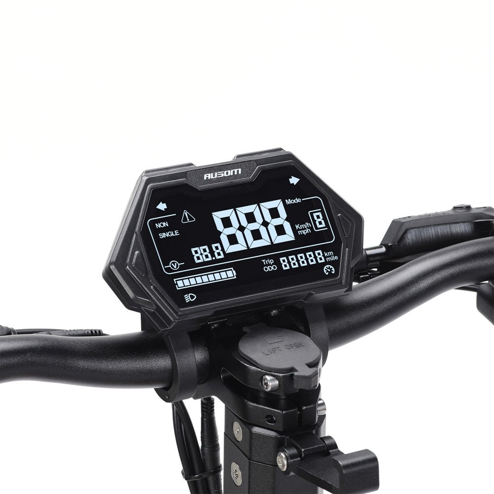 The Ausom Gallop has an intelligent LCD dashboard that keeps you informed of all the important details, such as the real-time speed, trip distance, and remaining battery power. You can switch assist levels, set screen timeout, change start modes, and more right from the display.