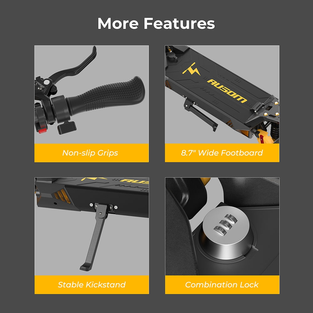 The Ausom Gallop features two mighty 1200W motors that deliver strong power and enable a top speed of 41mph and a maximum climb angle of 35%, providing you with an adrenaline-pumping ride that is both robust and thrilling.