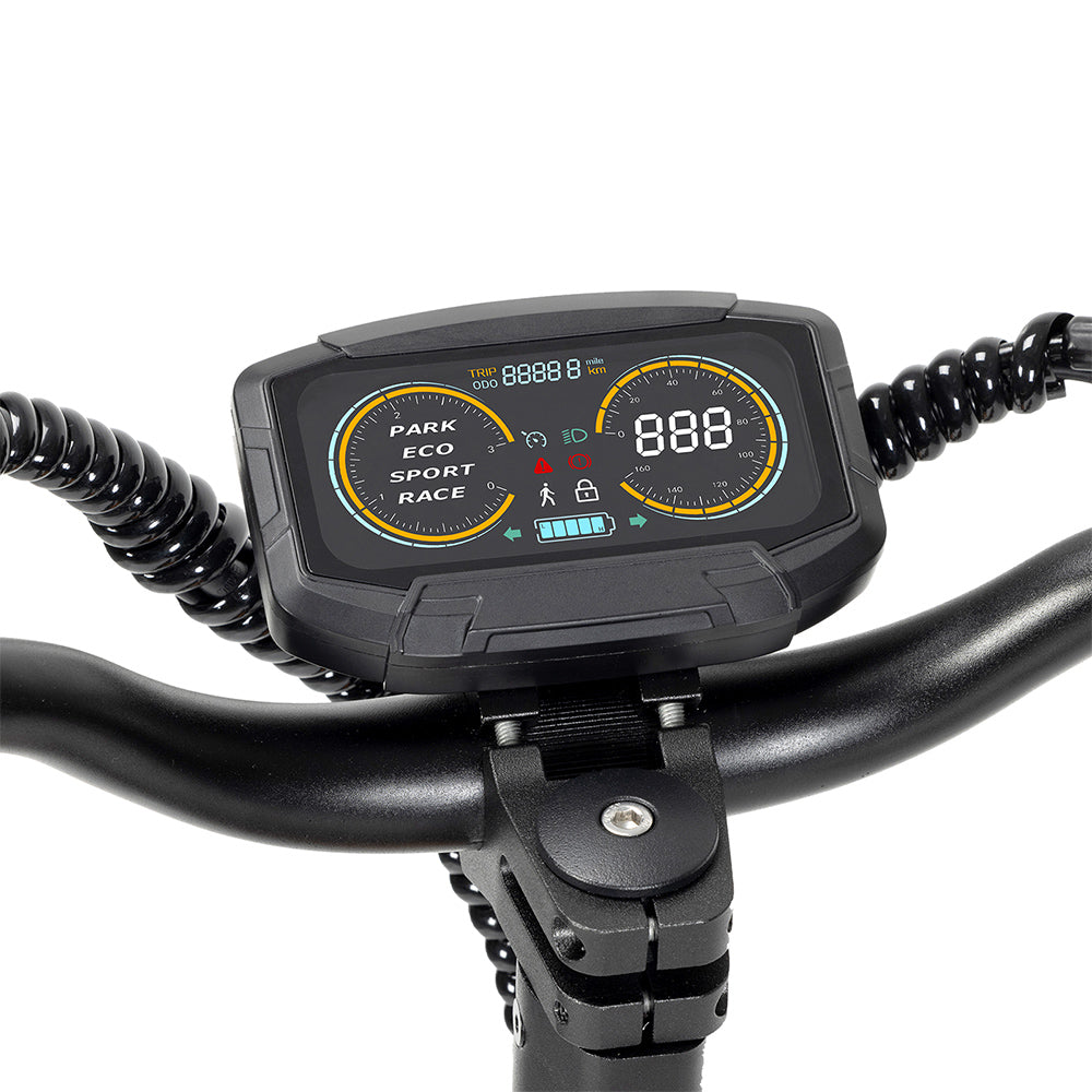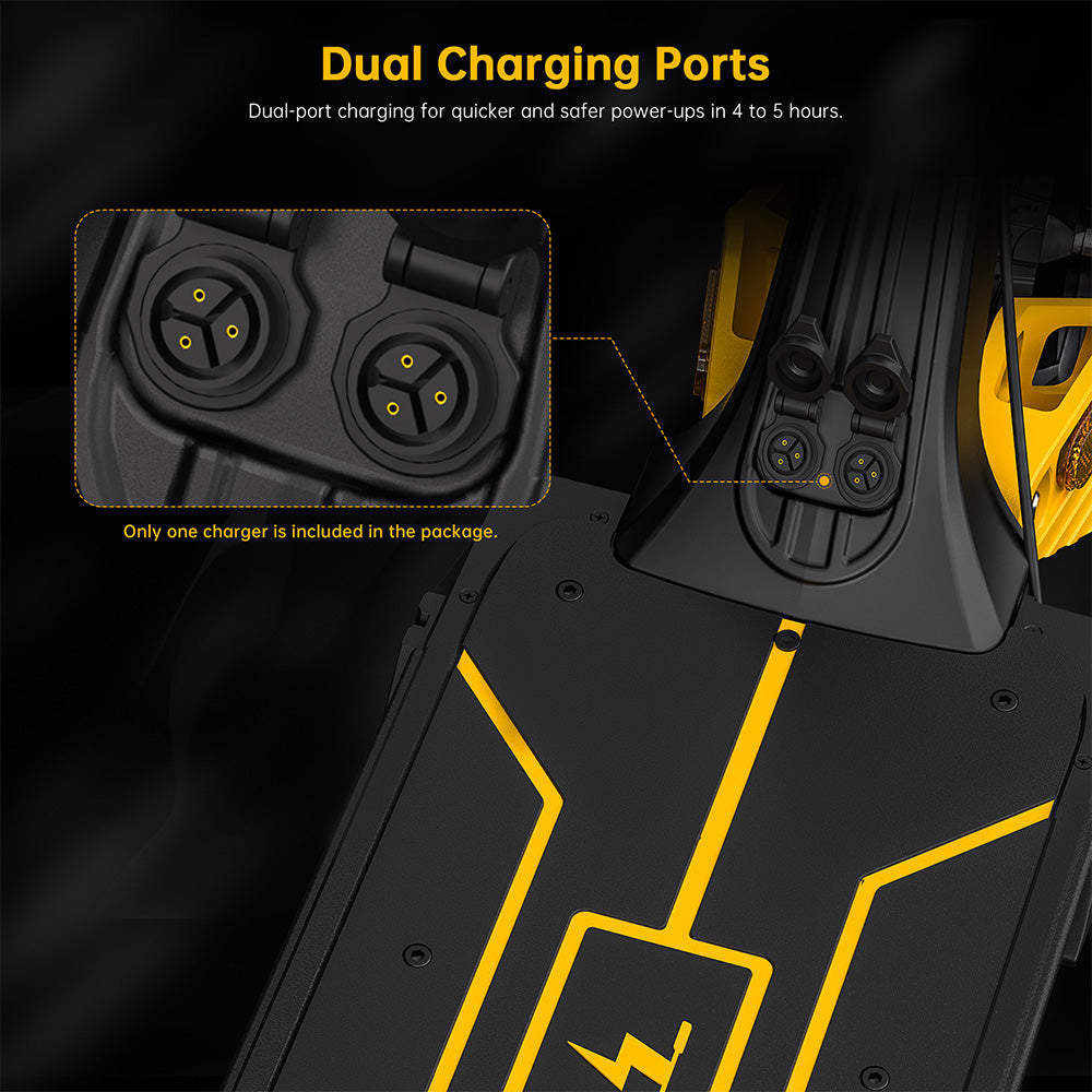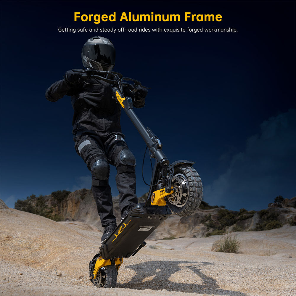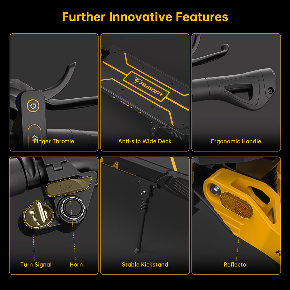 Enjoy an exceptionally comfortable ride with the Ausom Leopard DT1’ s SUV-level suspension system, which smooths out bumps and rough terrain for enjoyable urban commutes and off-road adventures. Coupled with thickened 10"x3" all-terrain tires, this e-scooter delivers unparalleled stability and control, allowing you to easily conquer diverse terrains and resist puncture.
