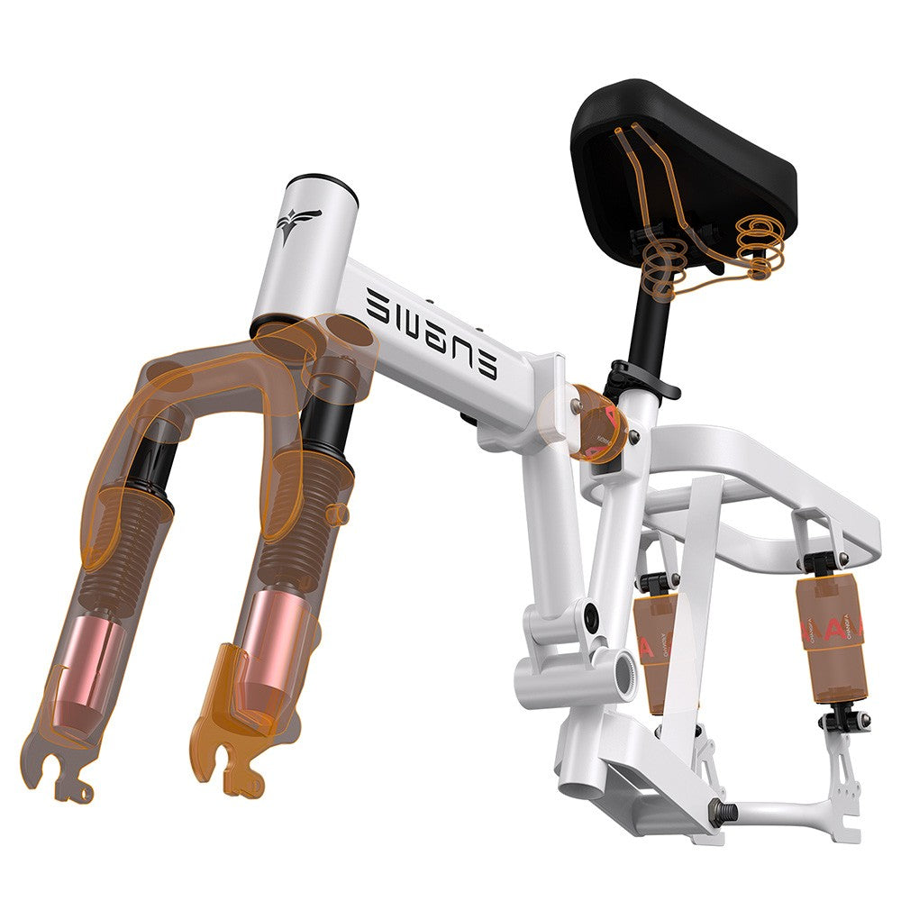 The advanced triple shock absorption system (front, central, and rear) works in tandem with the rugged 14*2.125 in rubber tires to absorb bumps and ensure a smooth, stable ride even on uneven roads.