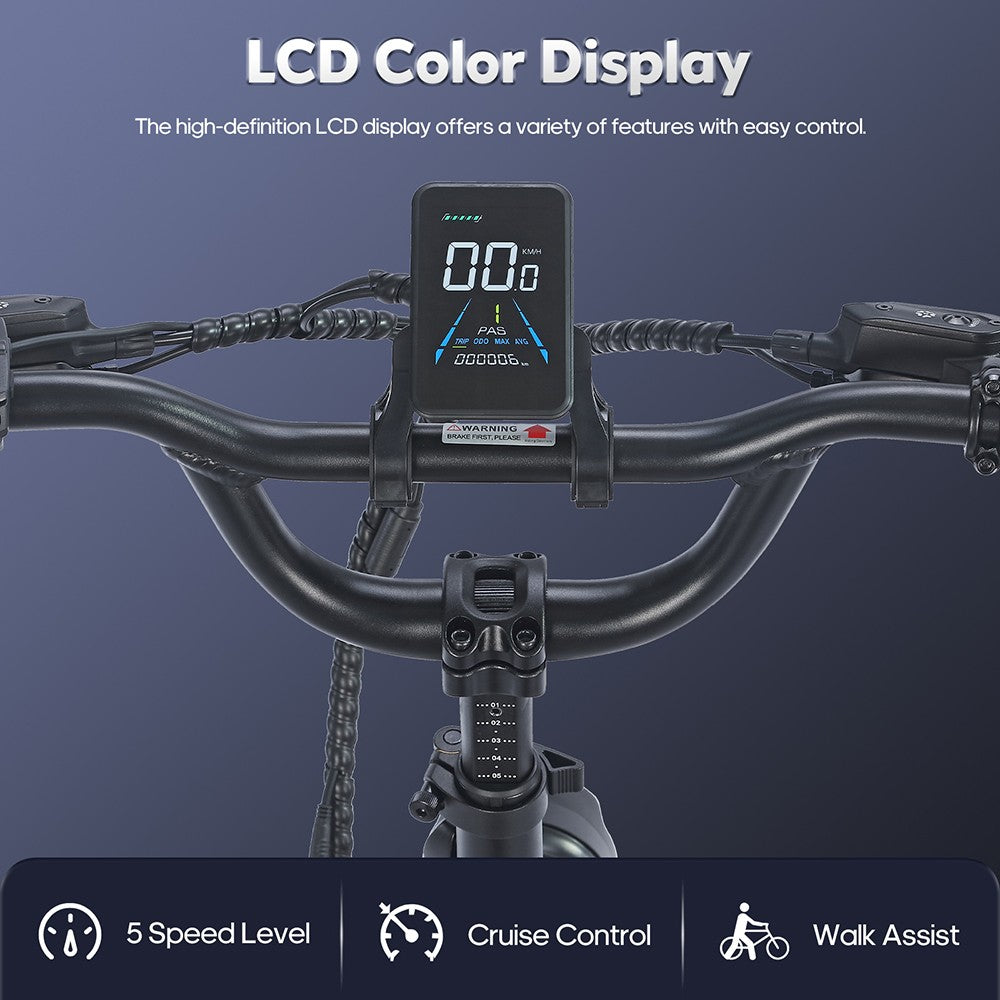 The high-definition LCD display offers a variety of features with easy control, and presets 5 speed levels. The large screen shows various data such as speed, battery, mileage, and gear. It has a walk assistance mode and cruise control function to help you ride whenever you need.