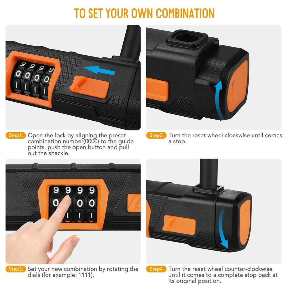 Bicycle U Lock Anti-theft Password Lock for Bikes, Motorcycles, Scooters