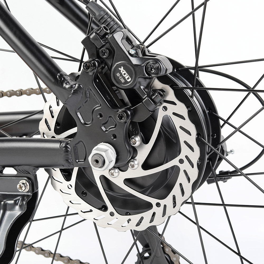 The hydraulic suspension is more responsive than other suspension systems, providing you with a smoother, firmer ride. With the lockout design, you can lock the suspension for a fast ride on flat roads and unlock it for a comfortable cruise on bumpy paths. The hydraulic disc brakes offer better control and increased braking effort. They dissipate heat more evenly and tend to last longer than traditional mechanical brakes, enabling a safer and more endurant ride.