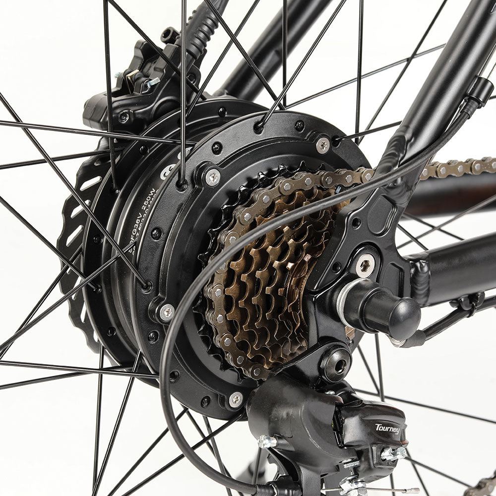 The Eleglide Mopride 2 (29") electric bicycle is equipped with professional Shimano derailleurs. It boasts 3 gears in the front and 8 gears at the back, allowing for a swift and effortless ride. With the help of the derailleurs, you will breeze through the roads with ease.