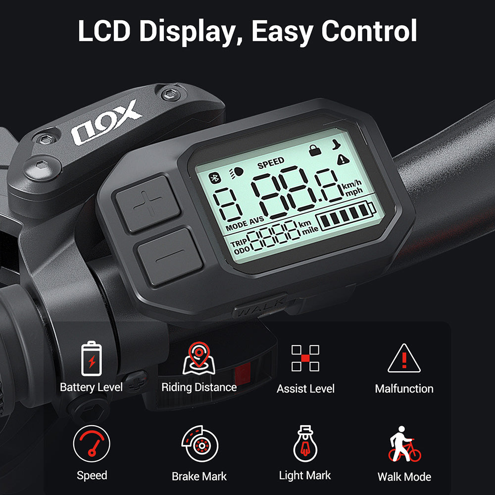 Eleglide Mopride 2 (29") comes with an intelligent LCD display that keeps you informed of all the important details, like the real-time speed, trip distance and remaining battery power. You can switch assist levels, set screen timeout, activate walk mode and more right from the display. Furthermore, you can control your bike via the app on your phone. The intelligent app allows you to activate additional functions, such as locking the bike, setting a password and adjusting the screen timeout, getting more out of your ride.