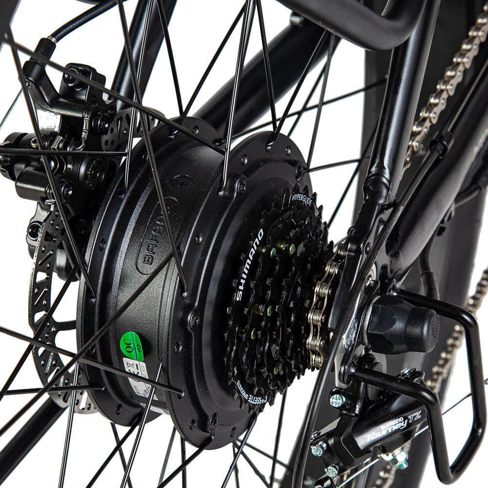 The GN26 off-road electric bicycle is equipped with a brushless Bafang motor on the rear wheel. The motor has a maximum torque of 80 Nm and can easily overcome gradients up to 35°.