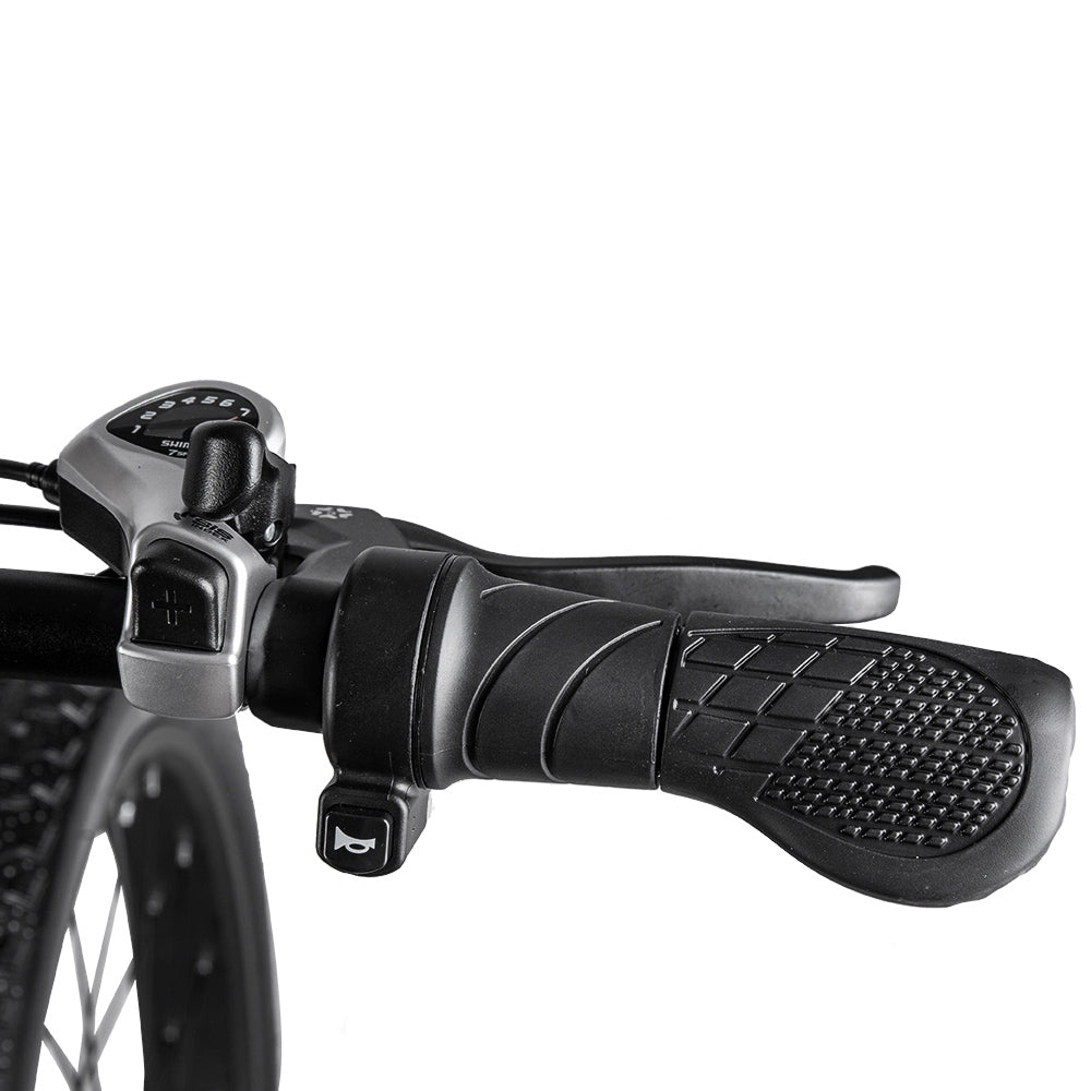 The LED display provides essential information to the driver. Equipped with Shimano 7-speed shifting system, you can have a safe and comfortable driving experience when driving in the city. Dual disc brakes and shock-absorbing front forks provide double safety.