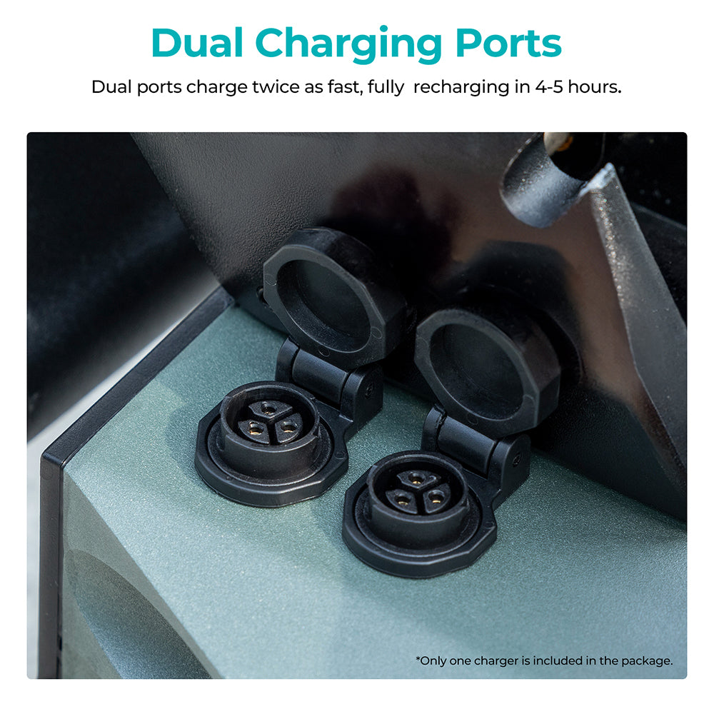 The Ausom GX1 features fast charging capabilities with dual charging ports, enabling efficient charging. When using both ports simultaneously, the scooter can achieve a full charge in 4 to 5 hours. This means less time recharging and more time enjoying your ride, ensuring that the scooter is always ready to go when you are.