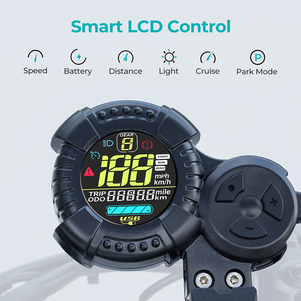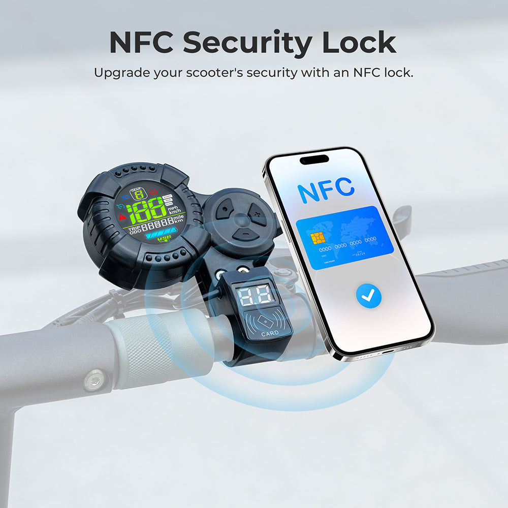 The Ausom GX1 electric scooter features advanced NFC unlocking technology, allowing for effortless access with just a tap of your phone or NFC card. This feature not only enhances convenience but also prevents unauthorized use, significantly boosting the scooter's security. The LCD display provides real-time information on speed, battery life, and riding mode, ensuring you stay informed and in control during every ride.