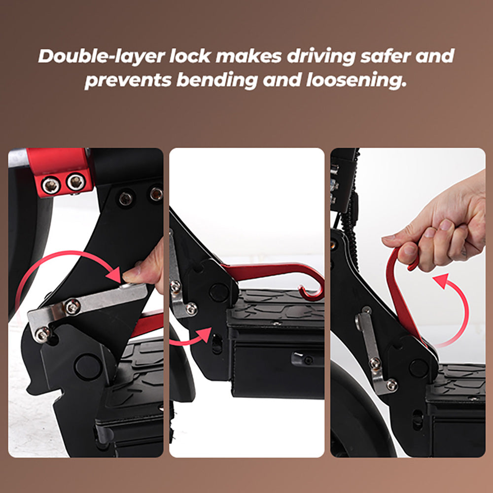 - Equipped with both front and rear disc brakes, along with the advanced EABS anti-lock braking system, this electric scooter ensures safe and precise braking within a short distance.