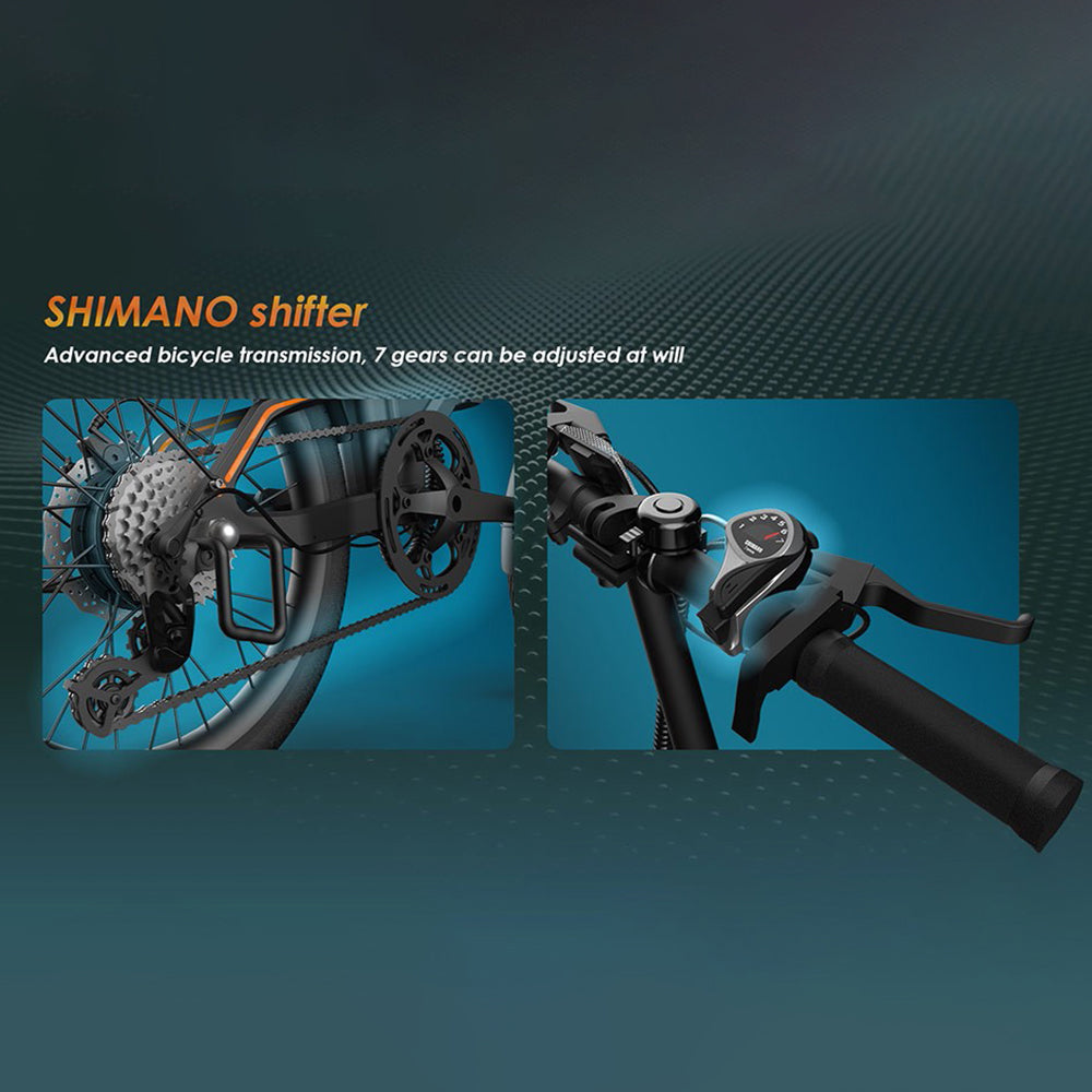 Equipped with three power modes and a SHIMANO 7-speed drivetrain, it can handle various road conditions and get up to 30 kilometers out of a single charge. The 20-inch well-built pneumatic tires offer excellent traction and shock absorption, providing a smooth ride on all terrains.