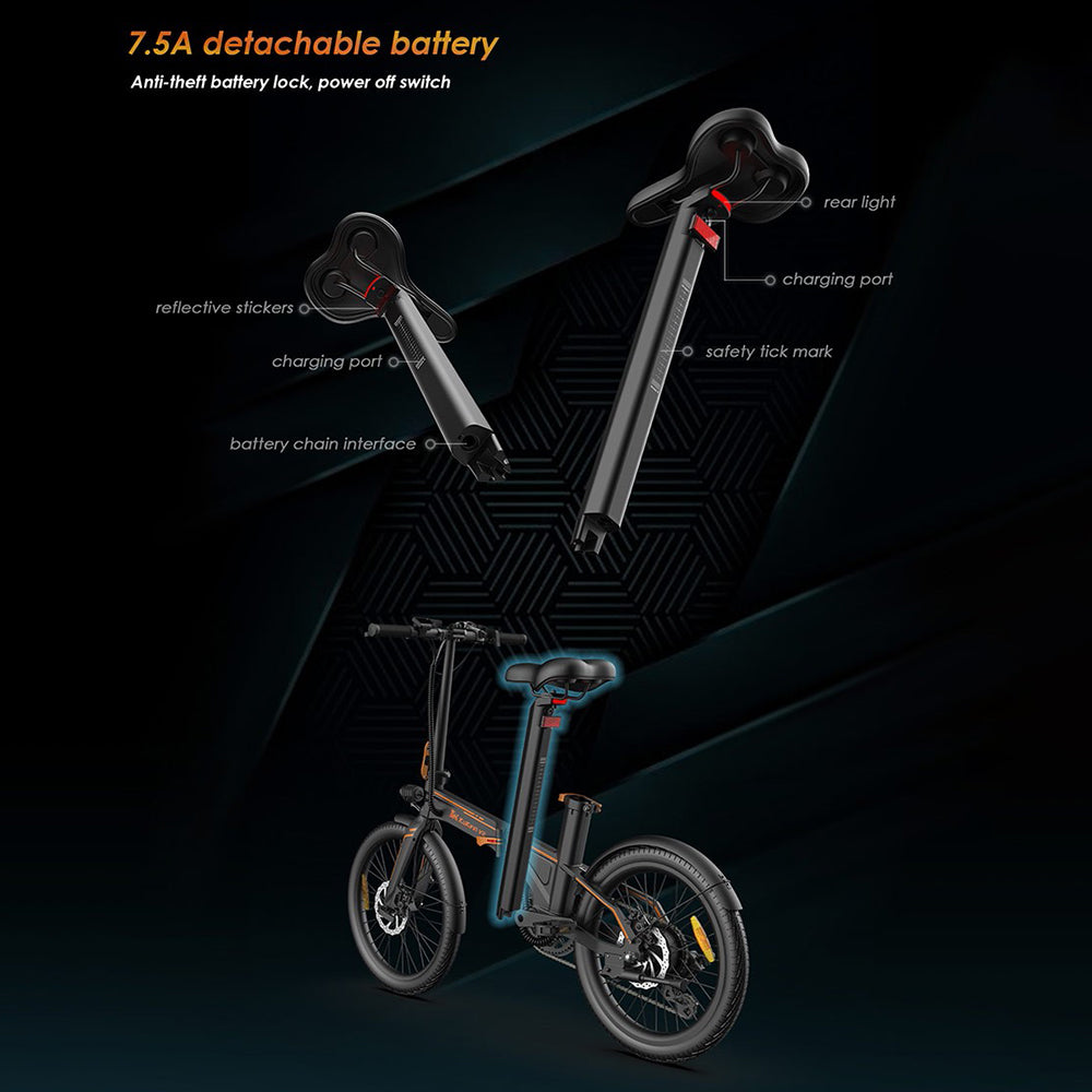 | Features | Foldable: Yes Pneumatic Tires: Yes Detachable Battery: Yes Adjustable Seat: Yes Waterproof: Yes LED Headlight: Yes Speed Mode: 3 Modes Drivetrain: 7 Speeds |