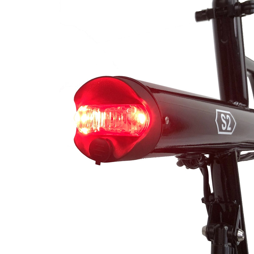 The integrated headlight blends seamlessly into the frame for a sleek and coordinated design. The rear taillight glows when the brakes are applied and is seamlessly integrated into the frame for added safety.
