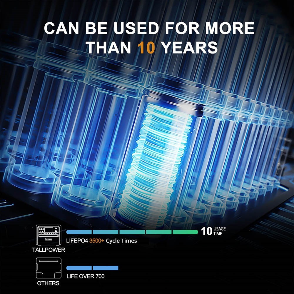 TALLPOWER V2400 portable power station has an ultra-large capacity of 2160Wh and 2400W AC output so that it can be used not only for small appliances, but also for large appliances such as microwaves, kota, electric blankets, and car refrigerators.