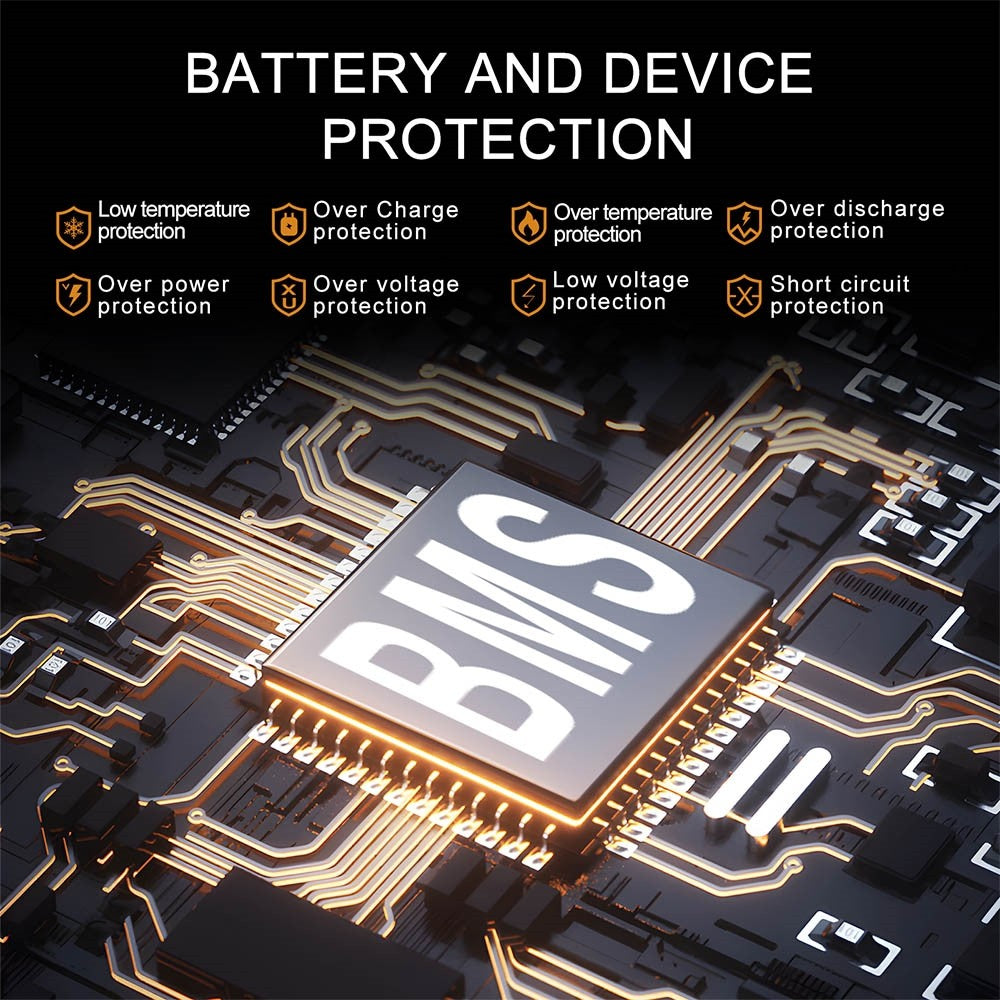 The built-in battery uses Lithium Iron Phosphate battery (LiFePO4), which has excellent safety and long life, and the battery can be used for approximately 10 years. Equipped with a battery management system (BMS) that monitors and manages internal batteries, it has overcharge, over-discharge, over-voltage, over-current protection, and temperature detection protection.